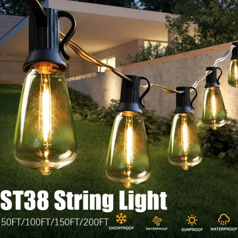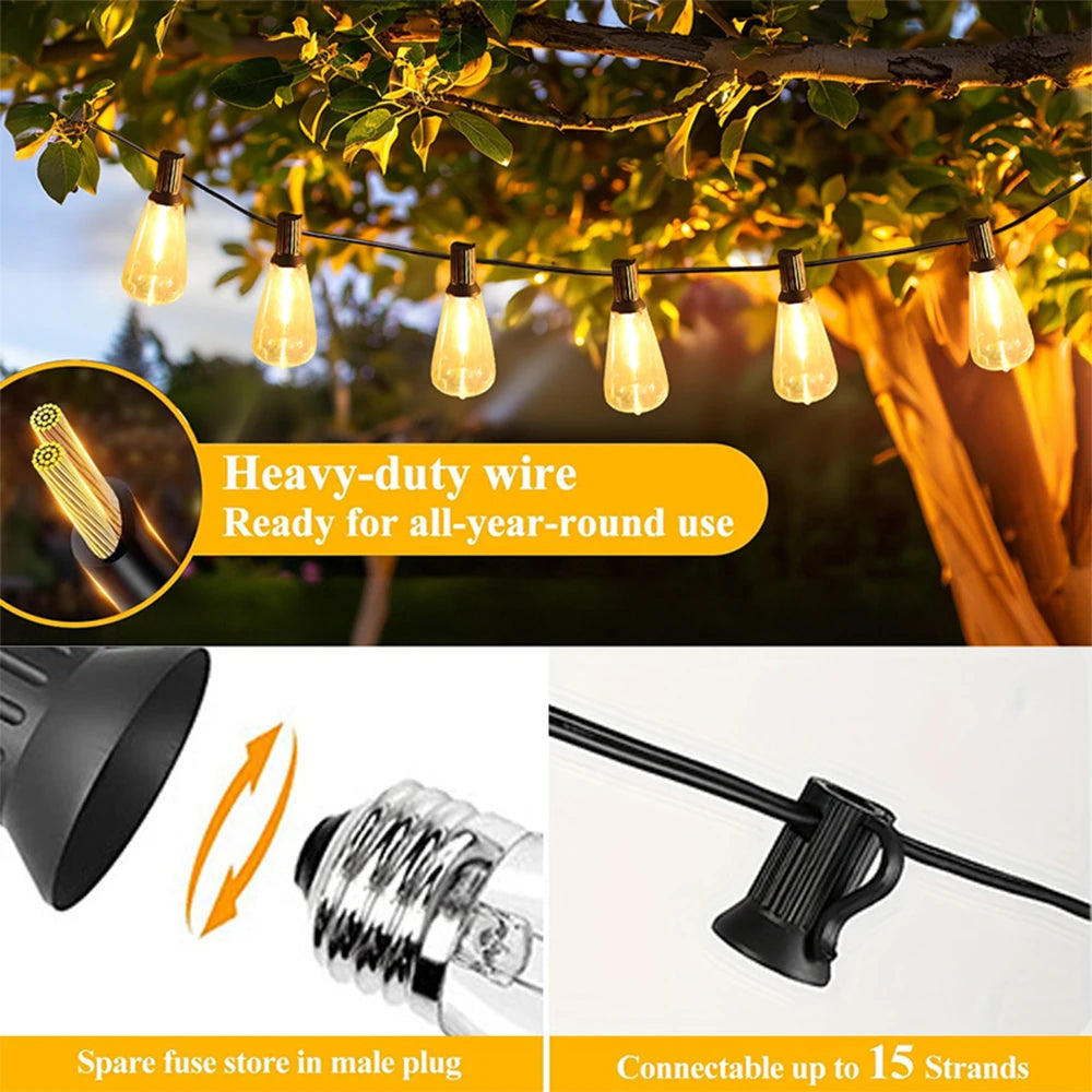 Outdoor String Light ST38 Patio Hanging Lights for Garden Outside Backyard Porch LED String Lights US Plastic Shatterproof Bulb